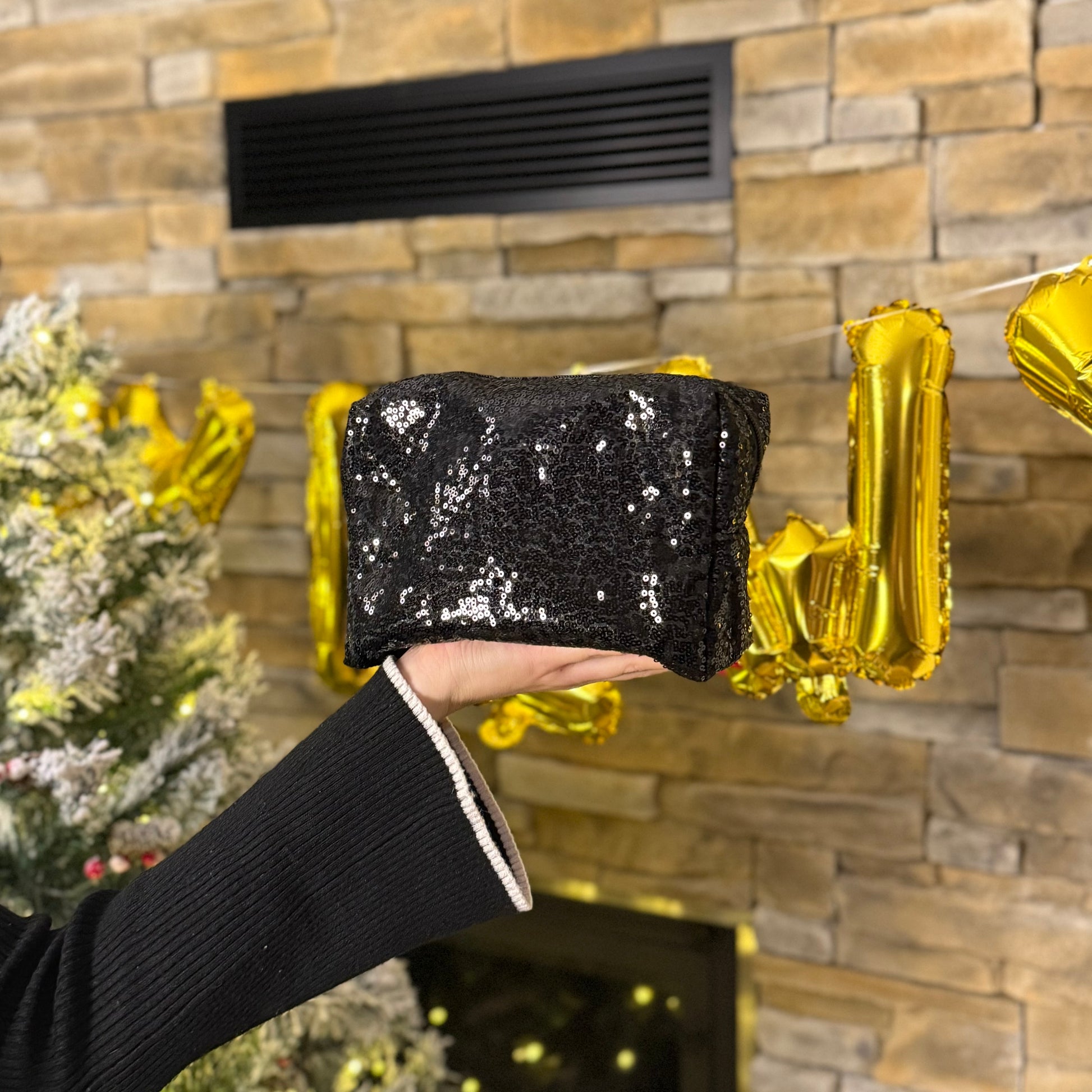 Kosmetiktasche / BlackGlitter L