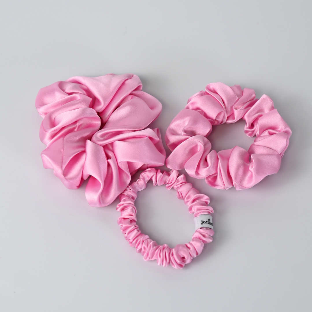 Unsere Seidenscrunchies minimieren Haarbruch, hinterlassen kaum Abdrücke und schützen die Kopfhaut. Gönne deinem Haar puren Luxus und Wohlgefühl.